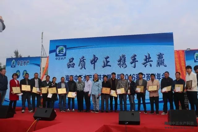 年会上,中正董事长雷夏雨在致辞中说到中正自成立之日起就一路奉行品质中正,携手共赢的经营理念。2017年,中正将继续严抓品质,继续为养殖户提供最放心的虾苗。